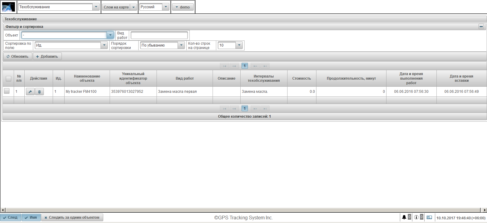 Также он появится в панели "Мониторинг". Чтобы объект отобразился в центре карты, кликните по имени объекта в списке.