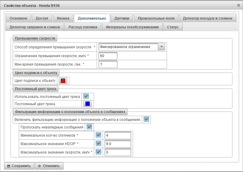 Если устройство настроен корректно и присылает данные в Систему, то чтобы увидеть его на карте, в системе необходимо создать для него объект. При создании объекта нужно заполнить следующие поля: