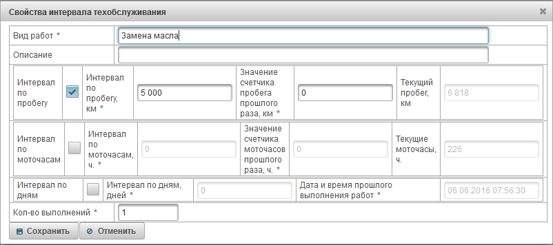 Значение счётчика моточасов |
