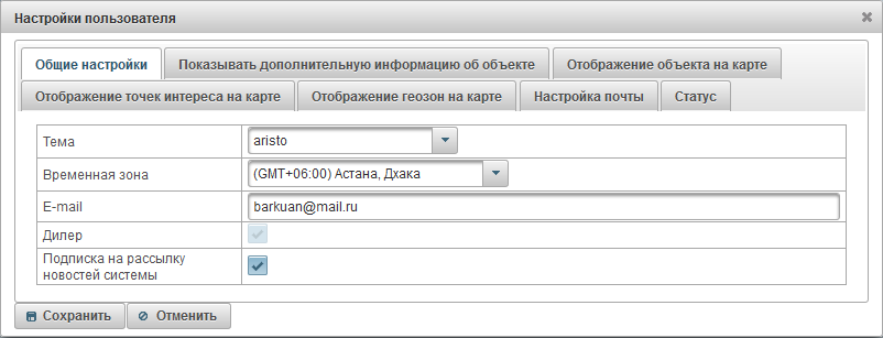 В диалоге настроек пользователя в поле "Временная зона" укажите свою временную зону, это нужно для корректного отображения времени везде и нажмите на кнопку "Сохранить".
