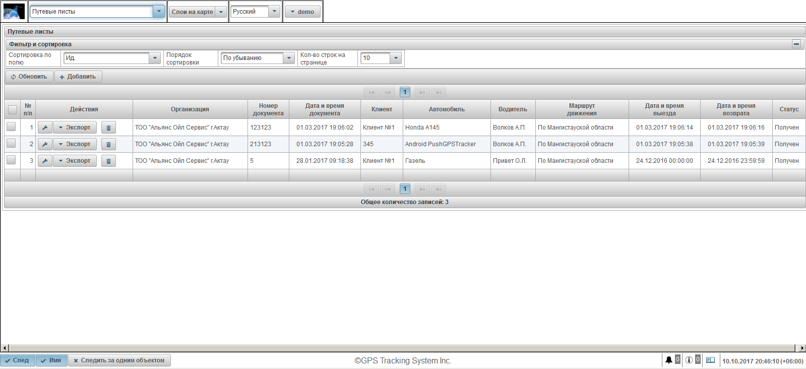 - Создание маршрутов и контроль движения транспорта по ним.